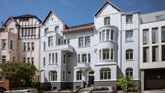 Das Gebäude steht mit seiner historischen Fassade unter Denkmalschutz. Ursprünglich als Hotel entstanden, wurde es bereits teilweise nach dem Krieg in Büro- und Wohneinheiten umgebaut. Aus den ehemaligen zwei Büroetagen sind nun Wohnungen entstanden. Das Dachgeschoss wurde vollständig ausgebaut und die restlichen Einheiten kernsanisert.
