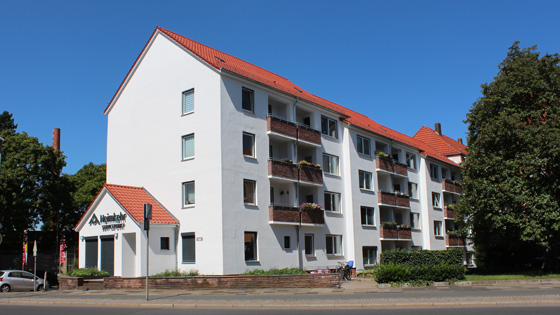 Hier finden die Mieter immer einen direkten Ansprechpartner - aber auch neue Interessenten können sich über die aktuelle Mietlage informieren. Auch eine behindertengerechte Nutzung konnte in dem Bestand realisert werden.