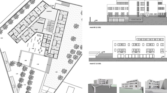 Entwurf und Konzeptplanung eines Neubaus für ein Altenzentrum mit 44 Zimmern auf 2800qm über 2 Etagen plus Souterrain plus Dachgeschoss
